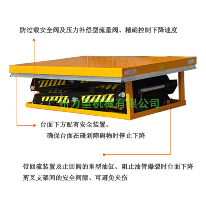 ● 液壓系統(tǒng)帶防爆閥,當油管爆裂時,可防止平臺車急速下滑;