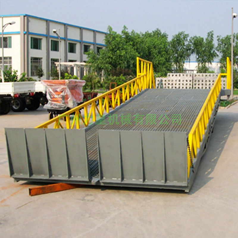 移動式液壓登車橋移動式液壓登車橋移動式液壓登車橋移動式液壓登車橋是與叉車配合使用的貨物裝卸輔助設備,可根據汽車車廂的高低調節高度,叉車可以直接通過本設備駛入車廂內部進行貨物的批量裝卸,僅需單人作業,即可實現貨物的快速裝卸。它使企業減少大量勞力,提高工作效率,獲取更大經濟效益。