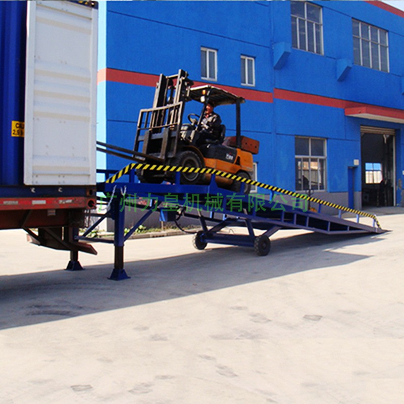 移動式液壓登車橋移動式液壓登車橋移動式液壓登車橋移動式液壓登車橋是與叉車配合使用的貨物裝卸輔助設備,可根據汽車車廂的高低調節高度,叉車可以直接通過本設備駛入車廂內部進行貨物的批量裝卸,僅需單人作業,即可實現貨物的快速裝卸。它使企業減少大量勞力,提高工作效率,獲取更大經濟效益。