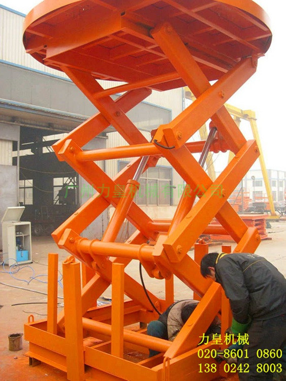 主要部件:上下框架、剪叉臂、橫梁、油缸、旋轉框架、旋轉系統(tǒng)、滾輪、旋轉軌道、液壓站、電控箱等